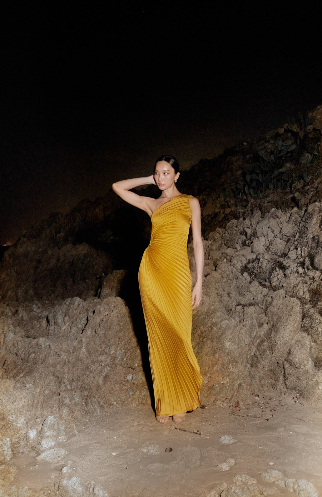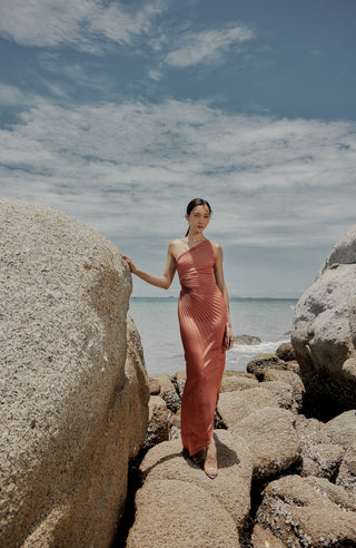 Enter the world of sophistication and elegance with our Connection Dress. Crafted from luxurious pleat satin, this maxi dress features a stunning one shoulder design, perfect for making a statement at any event. Embrace the beauty and grace of this dress and elevate your style with ease.